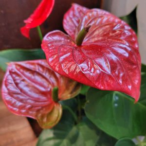 「アンスリウム」 カフェに置かれた植木鉢。 クリスマスツリー🎄と競って、 素敵でした。 🏷真っ赤な火曜日