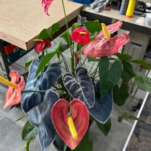 アンスリウム ベイチー×アンドレアナム開花😊 今回は凄く綺麗に開いてくれました✨ 腹筋バキバキ葉なのに可愛らしい花って最高です🤤