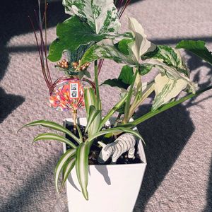 ✭シンゴニウム フレンチマーブル✭ 年が明けて相変わらず元気です (*˘︶˘*).。.:*♡ お正月らしくミニのお馬さん飾りました可愛いなぁ~ *·“♫·*”``*·✱„♪✴*·“♡