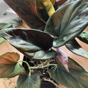 シンゴニウム チョコレート 前から欲しかったんです♪ すごくかっこいい💕 葉の裏はチョコレート色なんです🍫 値引きコーナーにいました❣️ ちょっとお疲れ気味な様子なので頑張って育てます😊