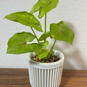 100均ワッツで買ったシンゴニウムライム🍋🟩 こちらはセットで付いていた陶器の鉢と、持っていたスリット鉢を組み合わせて半水耕栽培にしていました。 現在2月ですが、かなり生育旺盛なので一回り大きな鉢に変えたほうがいいかな?と思い株を抜いたところ、 アグラオネマ同様、根腐れしてるではありませんか!!😭 という訳でこちらも土に移行となりました🪴 あまりにあちこち新芽を出していて元気な様子に見えたから、まさか根腐れしてると思わなかったよ…ごめんよー🙏