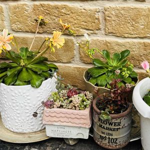 レウィシア 2度目のお花咲きそうです ③かっこいい😎モンステラ ④⑤暖かくなって外に出したら寒かった 葉っぱも取って 元気になってと改良剤も埋め込みました
