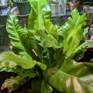 アスプレニウム アビス ⋯だと思います。 というのは、写真2枚目の葉っぱと3枚目の葉っぱが混在しているから。 2枚目の葉っぱは、薄く大きく平らで、寒さや乾燥に強い。 3枚目の葉っぱはアスプレニウムコブラにそっくりで乾燥に弱く、すぐ茶色くなります。 高知のモネの庭のアスプレニウムは地植えで、とても立派でした。 標高が少し高いので、うちより寒いはずですがとても綺麗な状態だったので、寒さ対策より 山の中のような湿度の確保が必要だと思いました。 子供の頃から記憶力がイマイチな私でも、絶対コブラは買った覚えはありません。 なぜならコブラは高価だから🤭🤭