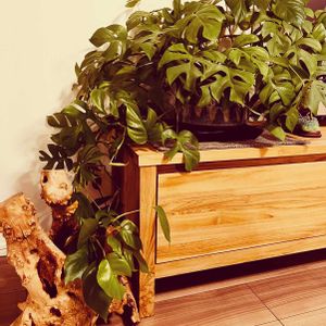 今晩は⭐️ お久しぶりです☺️ 秋深まったあっこさんの古住居 1️⃣帳場と青石土間 相方のライフワークである 観葉植物達の挿し木達 有象無象の挿し木達😓 鼈甲色の空間で寒さ凌いで 所狭しとひしめき合うʅ(◞‿◟)ʃ 2️⃣帳場から続きの中の間 相方一押し😻の🪴ウンベラータ 曽祖母の嫁入り道具 明治のタンスの横でなかなか良い塩梅(๑˃̵ᴗ˂̵)
