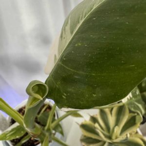 フィロデンドロン•バーキン やっと少し白が出てきました🙌 葉が丸まってるので乾燥気味😅