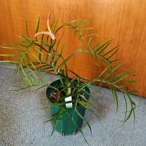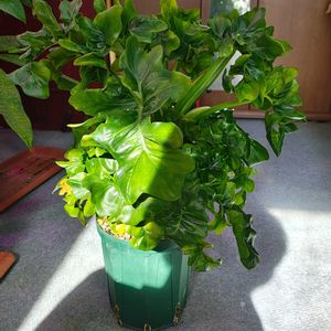 お迎え😊フィロデンドロンホセボーノ😊成長点が無くなった訳あり品ですが無事復活して欲しいです〜😊 【品種特徴】 ホセボーノ(ジョセボーノ)は、フィロデンドロンの中でも、特に美しい斑入り葉が魅力の品種です。 葉は大きく、鮮やかなグリーンの地色にクリーム色や白の散り斑が不規則に入ります。 この散り斑の入り方は一枚ごとに異なり、個体ごとに唯一無二の表情を見せてくれる点が人気の理由です。 葉の縁は丸みを帯びつつもギザギザとした切れ込みがあり、全体として柔らかさとワイルドさを併せ持っています。 ホセボーノの葉は、他のフィロデンドロンの多くと比べてやや薄く、繊細な質感です。 そのため乾燥に弱い傾向があり、葉が傷みやすいため、空気が乾燥しすぎないよう注意が必要です。 耐陰性が強く、室内の明るい日陰で育てやすいですが、あまり暗い場所に置くと徒長しやすく、葉柄が間延びするため、適度な間接光が必要です。 オシャレな演出にピッタリで、育てやすく、初心者の方にもオススメの品種です。 【フィロデンドロンについて】 フィロデンドロンは、世界の熱帯から亜熱帯におよそ650種もの植物を有する大型グループの観葉植物です。 つる性や直立性、葉の大きさ、模様など、品種によりさまざまです。 熱帯育ちのため、暑さに強く寒さに弱い、水をとても好むといった特徴を持ちます。