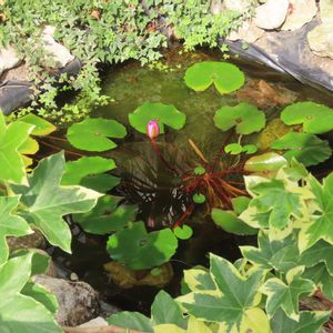 神代植物公園の熱帯睡蓮 💝チャーリーズ・プライドNo.52💝 赤みがかったピンク色で花弁数がやや多く整った花型の品種 🍃葉の表は鮮やかな緑色で葉裏はほんのりと赤みがかっている