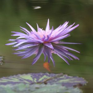 神代植物公園の熱帯スイレン 💜スターオブ・サイアムNo.51💜 明るい薄紫色・青紫色で花弁元は色合いが淡くなり黄色味を帯びる 🍃葉の表面には紫褐色の斑が不規則に入り、裏面は紫褐色