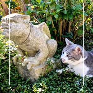 あら〜😊 ガーゴイルさんと鈴ちゃんは同じポーズ🤩 表情まで…難しい顔真似てる(笑) カワイイんだ〜❗♡♡♡♡♡♡💕 p2ポリゴナム 暖かいからまだまだ健在