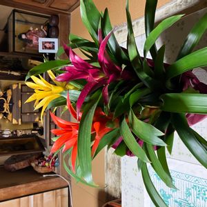 ブロメリアは「プルメリア」と全く違うパイナップル科の植物です。 花のように見える苞(ホウ)がとてもゴージャスに咲くブロメリアは、「理想の夫婦」などの花...