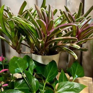 先日お迎えしたネオレゲリア・ファイヤーボール🔥 植替えして置き場所も決まってちょっと落ち着いてきたかなぁ〜 本来はもっとキレイな濃いピンクらしく 直射日光ガンガン当ててもいいみたい☀️ 日当たりの良い場所だから色付いてくれるかな〜 てか、親株のタンクにも水入れてたんだけど ゴミ?が見えてピンセット入れてほじったら ヘドロみたいな腐った何かが取れて🤮 臭いし汚いしなんだーーー!!!ってなった🤢 とりあえずキレイにできた(はず) 天井から吊るしてもいいとは言うけど とにかく幅が広くて場所取る!! 今のところも3鉢分を独り占めだからね!!😂 でも現時点で398円以上の楽しさを与えてくれてる気がする🤭