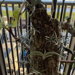 チランジア色々 小さくて硬い子達をコルク樹皮に寄せ着生 ギリエシーが早速外れそう 無くなったら嫌だなぁ