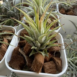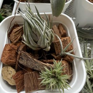 チランジア色々 小さくて硬い子達をコルク樹皮に寄せ着生 ギリエシーが早速外れそう 無くなったら嫌だなぁ