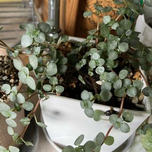 小さなピレア・グラウカをお迎えしました。丸い銀葉が垂れて素敵💓 垂れてしまったアロマティカスの隣におきました🎶 アロマティカスのさわやかな香りに癒されます〜