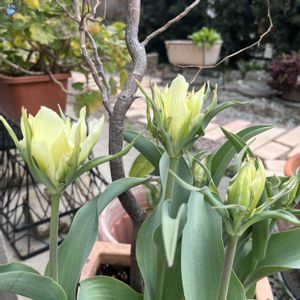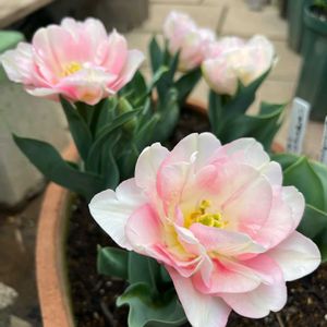 今晩は😊 7周年バラと夢CLUB一斉プレ企画。20時になりましたので、締切とさせていただきます。 29名ものご応募、ありがとうございます。発表は明日のpicとさせてくださいね。 ①チューリップ2番目は、変わり咲きのチューリップたちです。一緒の鉢にある枯れ木は、ソフォラリトルベイビーです。 去年春までは、元気で花も見せてくれたのに☆に😢 ②チューリップのアップと、mamanyanさんからのニャンコ肉牛鉢。地植えで生き残った、子持ち蓮華と、たぶんパープルヘイズ(mimimiさんから)です。 🏷️ニャンニャン祭りに参加します。