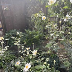 おはようございます☀️ ①昨日のしとしと雨の中、秋明菊が咲きはじめました。 ②大好きなソフォラがあやしい🤨枯れそう‼️何年も同じ鉢だから、土を入れ替えました。枯れないでー🙏