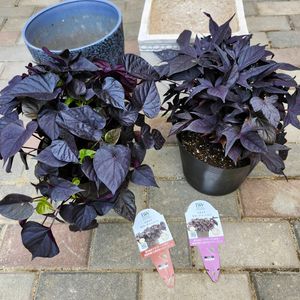 ハロウィン月間😘🎃 草取り強化月間😆🌱 夏に強かったイポメア、1株で5月から今日まで日焼けせず文句も言わずに沢山伸びてくれました💚手製陶器のカボチャと手製陶器の魔女🧙♀️🎃と😊💕 強いて言えば虫が葉っぱに穴を空けます。時々スプレー、またはオルトランで対応 ネットからℹ️ 株はほふくして横に伸びます。地中にはイモがあります。 元親はサツマイモですから夏の暑さに強く、他のカラーリーフが使いづらいよく日の当たる屋外でも活躍します。
