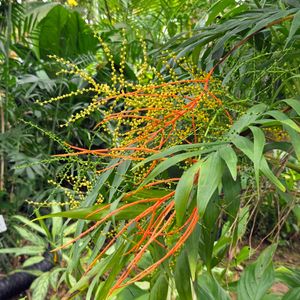 今日のお花 テーブルヤシ(ヤシ科) 先日行った植物園でちょうどお花が咲いてました。 変わったお花でした。 小型で耐陰性が高いため観葉植物として人気ですが、本来は高さ3mほどまで成長する、中南米原産の熱帯雨林の下草です。