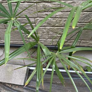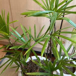 庭の銀木犀の根本から数ヵ月前から育っていた植物… シュロチクという観葉植物らしい😄 植物全般好きな義母からもらったクリスマスローズの傍から生えてきたので、根でも混ざってたのかしら? 鉢に植え替えてると、ワンコ散歩から帰ってきた旦那が「見たことある植物だなぁ…」と言ってたので😊 にしても観葉植物大好きな私には嬉しいサプライズ💕 ちょうど空いていた大きな鉢と観葉植物の土が残っていたので、玄関先で目立つ存在になりました😁
