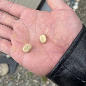おはようございます 肌寒い1週間になりそうです 週末には雪が降る場所も? 1枚目 実家で育ててるコーヒーの実の種 白いんですね 2枚目 ビワの鉢植えの根本。いろいろなにか生えてます