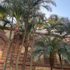 アラビアンコーストのトイレ脇のヤシ達^_^ 建物の影響でやや傷み程度(^ν^)