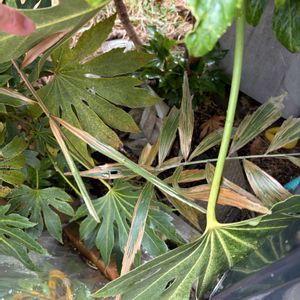 ヤツデの木陰の霜が当たりにくい場所のクロツグ(´-ω-`) 霜は避けれても寒さは変わらないので激しくダメージ(´;Д;`)