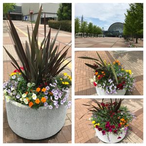 今日のお花 コルジリネと思った😅 ニューサイランの美しい寄せ植え 昨日 インテックス大阪にて