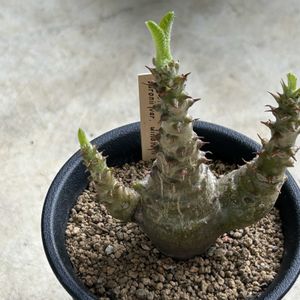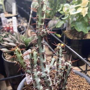 ユーフォルビア・アンボボンベンシスの茎?がよく伸びています。ポットも膨らんでいるので、ポットサイズを上げた方がいいかもしれません。
