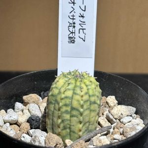 ユーフォルビア・オベサ梵天錦✨ 1/3(土)にゆうゆうグリーンさんの初売りへ行ってきました。 下の方にあった小さい小さいのに惹かれてお店の方に聞いてみると、オベサ梵天錦、それも私が先ほど眺めていてなんてかっこいい!と思っていた巨大なオベサ梵天錦ののカキコとのこと! タグも付けてくれました! とても大きくてきれいな色彩で見ていてワクワクする親株様の写真は5枚目参照✨ いつかこのかっこいいお母さんオベサ梵天錦のように大きく育つかなぁと楽しみです✨
