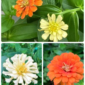 おはようございます😃 今朝は室温26℃ 涼しく感じる朝です。 種からの百日草が 1度目の開花では 見られなかったお花が 咲きました♪ クリーム色と白と コロンとしたオレンジ です💛🤍🧡 2枚目は古株の ローズマリー🌿のお花が 可愛い🤍💜 春より淡い色ですね〜 3枚目はウォーター マッシュルーム💚 下から花芽が上がって きています。 雨て濡れて喜んで います☔️ 素敵な週末を〜🍀🌼🌿