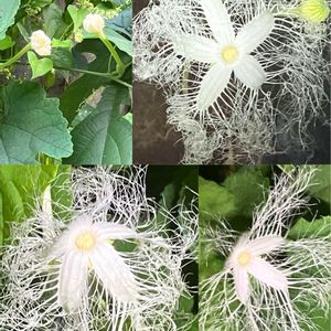 おはようございます😃 散歩道にて🤗 ①カラスウリの花(一日花) 白く花弁の先が細かく裂けて糸状になるレースの様な美しい花が咲きます🤗夕暮れから夜にかけて花が開く為,夜中に行って撮ってきました😄 左上は,蕾です😆 ②ニチニチソウ 上の3つの花は,私の庭にて,種から育って、やっと咲きました☺️ ③フロックス🤍 真っ白で綺麗でした😄 ④バラ🤍とノウゼンカズラ ⑤ゲッキツ(月橘) 別名、シルクジャスミン 爽やかな柑橘系の香りで,夜に香りが強くなるそうです😉 🏷️白い貴婦人✨ 🏷️白い水曜日♡ 🏷️水曜ローズショー 参加します。
