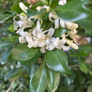7月❹【月橘】*浦添市西原 R7.7.7 **小暑** オレンジジャスミン🍊✨ とも呼ばれる柑橘系の白花。 🌱バラ類 🌱ムクロジ目 🌱ミカン科 🌱ゲッキツ属 🌄日の出…5:43 📷2026.7.6 am 8:59 ⛅️
