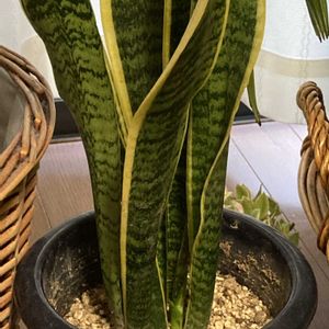 こんにちは😃 ずっと欲しかった『サンセベリア』 先日近くのホームセンターで¥298の値札が値引きされて¥50になっていたのを見つけたのですが悲惨な風貌でした😰 小さな苗用ポットの中で土はカラカラで立って居られず横になっていました葉っぱも一枚シワシワになり始めていました 可哀想に思い何とか元気を取り戻してあげたくて家にお連れして直ぐにキチンと鉢植えにしてあげました 何とか元気になってくれますように🙏と願っています ※風水でサンスベリア(サンセベリア)は、鋭く尖った葉が「邪気」や「悪い気」を払い、優れた空気清浄効果と共に、高い運気アップ(特に健康運、魔除け、金運)が期待できる観葉植物です。玄関やトイレ、鬼門などの「陰」の気が溜まりやすい場所の浄化に最適です。 (Google引用)