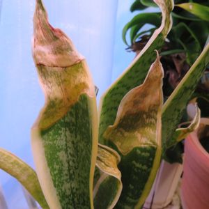 おはようございます。 朝から強い風です💦 外の植物さん達大丈夫かなぁ👀💦 中の植物さん達は、今日も元気です 😊 サンスベリア。朝目覚めるとベランダの光で美しい✨