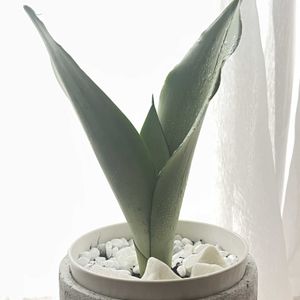 淡いシルバーグリーンが美しいサンスベリア・ムーンシャイン。葉水をかけて眺めています。
