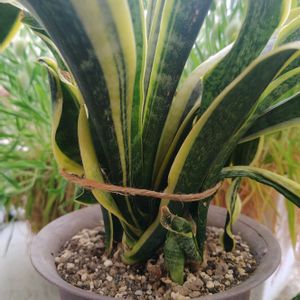 今日のお花(葉っぱ) サンスベリア💚 実家のサンスベリアを葉挿し して増やしました🌱 背丈色々です😅 本来、サンスベリアローレンティーは、黄色い縁取りがありますが、 葉挿しからは、縁無しになるそう です。 黄色い縁取りがあるのを、 買おうかなぁ〜 他に二鉢増えました🪴 もう増やすの、やめます🤭 母の趣味のステンドガラス、 家具、レースなどと🤱
