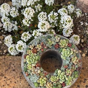お庭つぶつぶで ミニミニリース寄せ♥️💚 アリッサムもりもり可愛い〜🤍 今月もぼちぼち よろしくお願いします🙇♀️