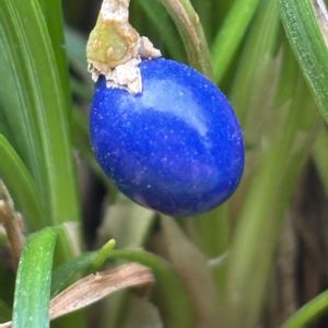 💐今日のお花💐〜リュウノヒゲ〜 からの我が家のタマリュウ💙 タマリュウは、リュウノヒゲを品種改良して葉を短くした園芸品種らしいんです📝 我が家のお庭にインディゴブルーの実を発見💙 ツヤツヤ綺麗です😍 2026 1/8 撮影 2枚目…こんなスカスカな場所なんですけど🤭 30数年前に購入して、当時色々な所に添わせて植えてました💚 お嫁入りさせたりあちこちに移植し、生き残っています🌿 3枚目…一昨年だか裏のお隣さんとの境目、砂利だけの所にも移植💚 残念ながら実はありませんが、葉はどんどん増えますネ😆