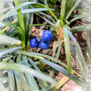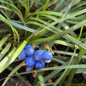 💐今日のお花💐〜リュウノヒゲ〜 からの我が家のタマリュウ💙 タマリュウは、リュウノヒゲを品種改良して葉を短くした園芸品種らしいんです📝 我が家のお庭にインディゴブルーの実を発見💙 ツヤツヤ綺麗です😍 2026 1/8 撮影 2枚目…こんなスカスカな場所なんですけど🤭 30数年前に購入して、当時色々な所に添わせて植えてました💚 お嫁入りさせたりあちこちに移植し、生き残っています🌿 3枚目…一昨年だか裏のお隣さんとの境目、砂利だけの所にも移植💚 残念ながら実はありませんが、葉はどんどん増えますネ😆