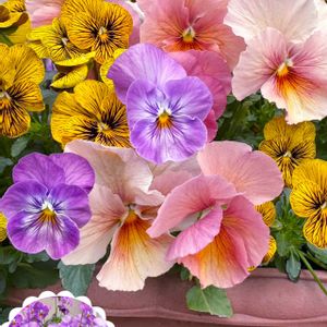 おはようございます 今朝は雨まだ残っていますが 午後には回復してくる予報です 今日は雨が降る前に撮っておいたpicを投稿します ①まさしく春爛漫♡⸜(ˆᗜˆ˵ )⸝♡ 日差しを浴びて みんなが私を撮ってと言って 集まってきたよう(*´˘`*)♡ 私の好きなアプリコット色の パンジーとビオラさんたち🥰 加工無しのそのまま色で 春を感じた1枚です♡⸜(ˆᗜˆ˵ )⸝♡ ②桃色デージー💓 ③寄せ植えの桃色ジュリアン 可愛さずっと続いてます(*^^*) ④万葉菫 こんな色合いも大好き💜 ⑤ビオラトイニー お気に入り(ღ*ˇ ˇ*)。o♡ ムスカリがこんなに勢いよく 背が伸びてきました(๑♡∀♡๑) お天気がイマイチですが 我が家もお花満開🥰 幸せ気分♡⸜(ˆᗜˆ˵ )⸝♡ 今日は学生時代の友達と会ってきます♥️ 皆さんも良き1日で ありますように(⁎ᴗ͈ˬᴗ͈⁎)♥️