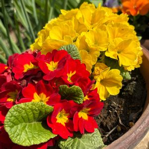 お散歩道のお花さんです。❤️💛 プリムラジュリアンさんが可愛いです〜!🥰❤️💛😘
