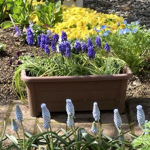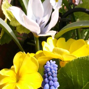 今日のお花「サクラソウ」 サクラソウ科サクラソウ属のプリムラ マラコイデスとジュリアンのプチ寄せ植えに仕込んでおいた小さな原種チューリップ🌷とムスカリが咲きました✨ もうすっかり春ですねぇ🍃🌷🌸🔅🔆🔅
