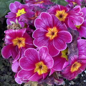 プリムラ・ポリアンサの、花姿が 乱れて来た為、処分予定でしたが 乱れた花を全て除去。 何日かすると、2番花が、見事に、 咲いてくれました。