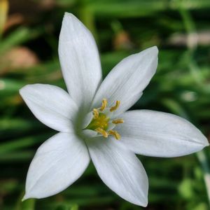 オオアマナ キジカクシ科オオアマナ属 多年草 ヨーロッパ〜アジア南西部原産 日本には観賞用として明治末期に渡来した。 逸脱し、野生化している。 英名はベツレヘムの星だが、ハナニラもそう呼ばれる。 別名はオーニソガラム 名前の由来はアマナに似ていることから。 花期4〜5月 直径約3cmの白い6弁花が、花茎の先に多数咲く。 花弁の内側は純白、外側はグリーンで、蕾の時と開花した時の色合いが合わさり、王冠のような雄しべも魅力的である。 1本の茎に数輪の花が付き、いっぺんには咲かず、徐々に開花する。 花後に葉は枯れる。 11月頃に線状の葉を展開し、その状態のまま越冬する。 花言葉は「潔白」「純粋」「無垢」「才能」 🏷️白い水曜日♡ に参加させていただきます。