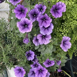 ペチュニアが沢山、枝垂れ咲きました💜 お花の色も濃いめでいい感じ〜🤗 このあとはどうすれば夏も咲かせられるのか…だいたい毎年失敗してます😅💦 もう少ししたら、ダメ元で剪定しようと思ってます✂️