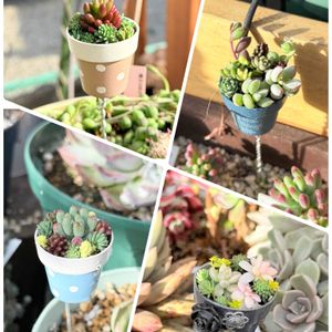 多肉始めたころによく買ってた一寸鉢 ずっと置いてたのをリメイクしてピックにしました。 で、チマチマ植えて大きめ鉢にブッ挿しました( ̄∀ ̄)