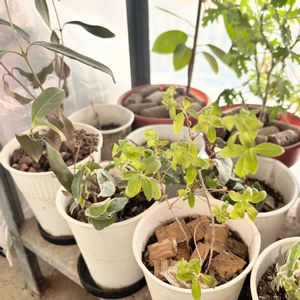 ベランダの掃除をするために鉢を1ヶ所に寄せたら、めっちゃ緑の一角ができちゃった。 花より緑が多い❗️