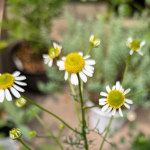 💠 今日のお花・カモミール 💠 ジャーマンカモミールの収穫は、 花びらが全部開花し、 花びらが反り返る前に花の中心の 黄色い部分が盛り上がってきた頃が適期です。 (2025.6/13 撮影)
