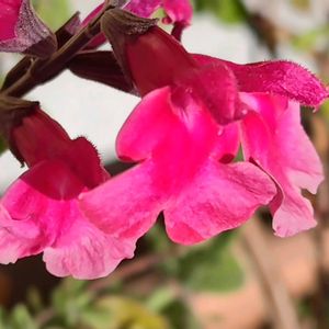 可愛らしくお庭に咲いていた、ピンクの「チェリーセージ」で、おはようございます🩷🍒🩷 普段紅白ツートンカラーのチェリーセージに見慣れていたせいか、ピンクバージョンは、新鮮に感じました😃❣️ "チェリーセージ"は、メキシコからアメリカ南西部を原産とハーブの一種🇲🇽 正式名が「サルビア・ミクロフィラ」というように、サルビアの仲間で葉をこすると甘い果実のような香りがすることから「チェリーセージ」の愛称で親しまれていますね✨ 暑さや乾燥にも非常に強く、一度根付くと驚くほど長い期間、可愛らしい小花を咲かせ続けるのも特性ですね🎶 ー花言葉は、「家族愛」、「知恵」…他。