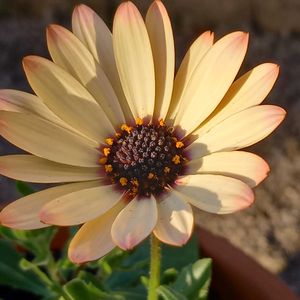 おはようございます😃 午前6時現在の気温は14℃。 昨日からの雨風は止みましたが 午後から明後日の昼まで雨の予報☔️ 昨日は桜吹雪が見れましたが 今日もだいぶ散ってしまいそうです😓 写真① 二度目の出演となります。 オステオスペルマム グランドキャニオンです。 昨年の9月に見切り品コーナーから連れて帰ってから半年 ようやくほぼ満開になりました😊 写真② ベテランのシバザクラと ちゃっかり出てきたハナニラ。 後ろにいるチェリーセージも つぼみが出来てました☺️ 今日から新年度がスタート❗️ 今年度も宜しくお願い致します🙇